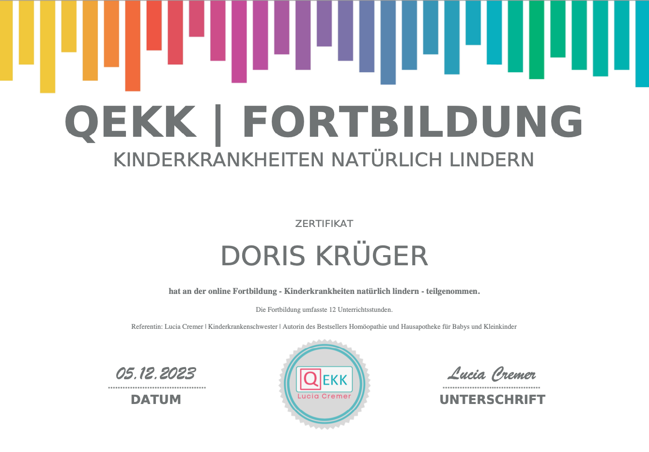 Abschluss der Fortbildung "Kinderkrankheiten natürlich lindern" bei QEKK
