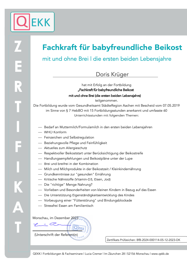 Fachkraft für babyfreundliche Beikost mit und ohne Brei (QEKK)
